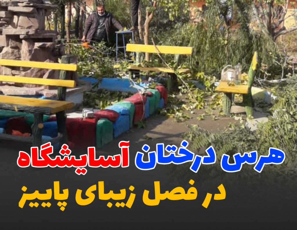 هرس درختان آسایشگاه خیریه فرشتگان فجر آسمانی در فصل زیبای پاییز